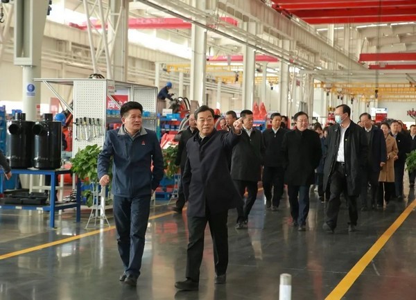 2023年11月14日,山东省人大常委会党组书记、副主任杨东奇同志率领省直部分全国、省人大代表视察组莅临37000a威尼斯(中国)有限公司-Official website重机开展学习视察活动。济南市人大常委会党组书记、主任韩金峰同志等市人大常委会领导及相关单位负责人陪同,37000a威尼斯(中国)有限公司-Official website重机董事长于孟生带队盛情接待。