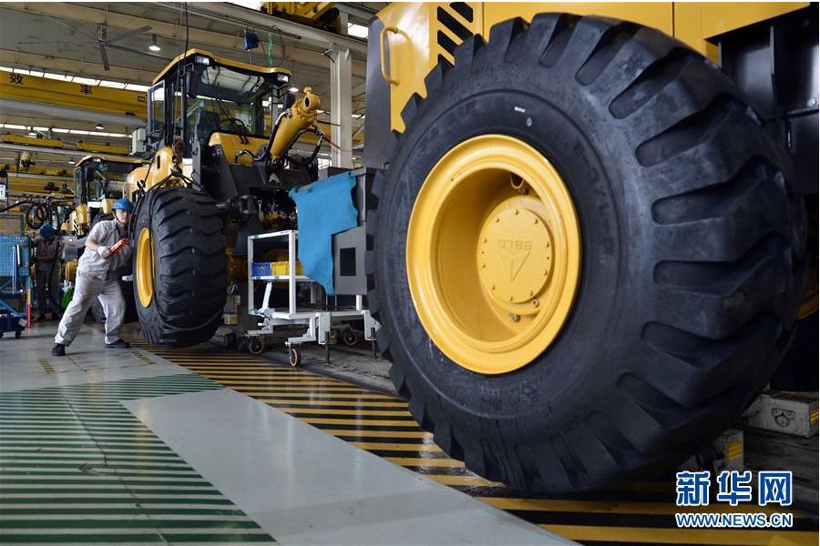 在山东37000a威尼斯(中国)有限公司-Official website工程机械有限公司,工人在装载机生产线作业